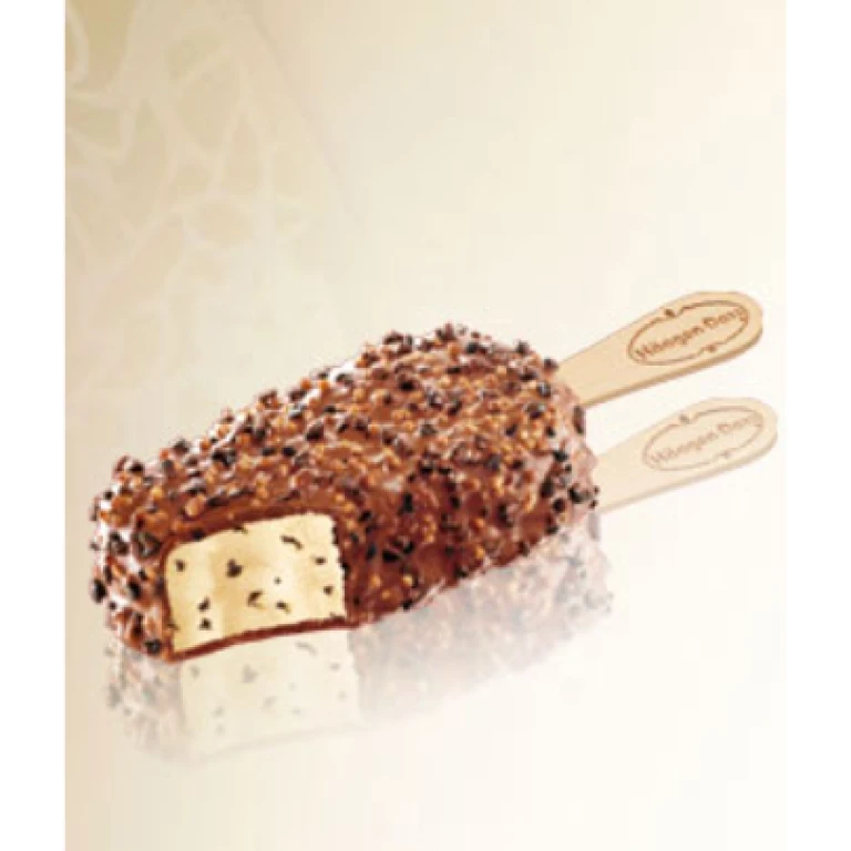 Crème glacée vanille avec morceaux de cookies enrobée de chocolat au lait incrusté de morceaux de cookies et de céréales croustillantes.