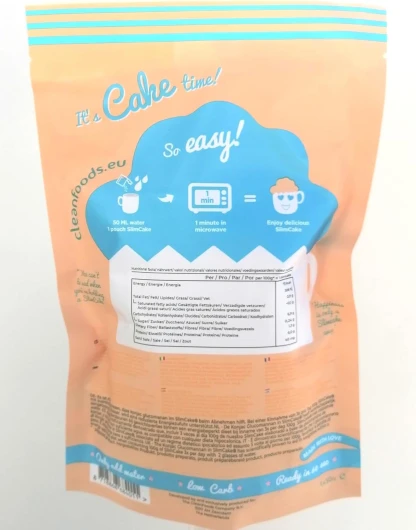 SlimCake est très simple à préparer et prêt en une minute seulement. Versez le contenu d'un sachet (50 grammes) dans une tasse ou un mug, ajoutez 50 ml d'eau et remuez bien. Mettez la tasse ou le mug au micro-ondes pendant 1 minute à 900 watts et le tour est joué ! Les SlimCakes peuvent également être préparés au four. Pour ce faire, préchauffez le four à 175 degrés Celsius, versez le contenu d'un sachet (50 grammes) dans une tasse ou un mug et mélangez avec 50 ml d'eau. Mettez le récipient au four et placez un verre d'eau à côté. Cuire au four environ 15 minutes et laisser refroidir légèrement.