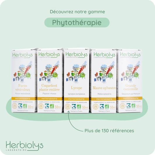 Plante connue pour stimuler l'organisme, également utilisée comme anti-infectieux. Connue depuis des milliers d’années, la phytothérapie est une médecine naturelle qui utilise les différentes parties des plantes (sommités fleuries, feuilles, racines, plantes entières, parties aériennes) pour remédier aux maux du quotidien. Chez Herbiolys nous vous proposons une large gamme de phytothérapie sous la forme de macération hydro-alcoolique de plante fraîche biologique. Pour chaque plante, nous avons élaboré un processus de fabrication afin d’optimiser la qualité des extraits obtenus.