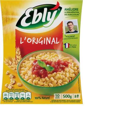Issu d'une coopérative agricole, Ebly® s'engage avec CultivUp et crée une filière de blé dur respectueuse des Hommes et de l'environnement. Le blé gourmand Ebly® cultivé en France plaît aux plus grands comme aux plus petits pour son bon goût de céréale et sa texture ferme et fondante. Ce produit est idéal comme accompagnement ou pour réaliser une salade. Cette recette est parfaite pour vos repas rapide, savoureux et également pour tous vos plats végétariens. Nutriscore A / Note Yuka: 90/100