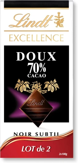 Fermez les yeux et découvrez le plus fin des plaisirs. Les chocolats de dégustation Lindt EXCELLENCE sont préparés pour vous par nos Maîtres Chocolatiers Lindt avec une rare exigence de perfection : de la sélection des fèves à la révélation des saveurs et des textures les plus fines du chocolat. Découvrez Lindt EXCELLENCE 70% Cacao Doux : un goût cacaoté aromatique, subtilement intense et peu amer. Un pur plaisir, tout en finesse.