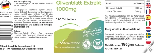 | Contact du fabricant | Vitamintrend BV, Economiestraat 39, NL-6433 KC Hoensbroek, www.vitamintrend.com |