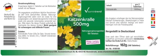 | Contact du fabricant | Vitamintrend BV, Economiestraat 39, NL-6433 KC Hoensbroek, www.vitamintrend.com |